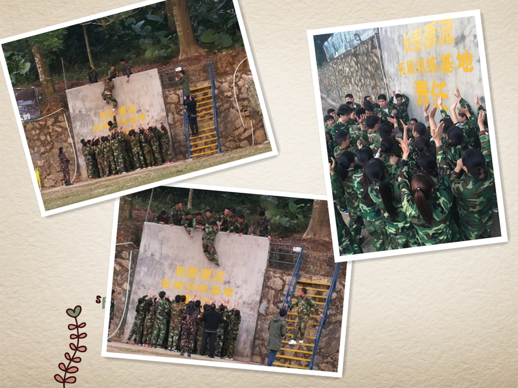 在最后“翻越毕业墙”时,面对高4.5米的水泥光滑面墙体时,要保证在20分钟内翻越,没有任何可借力的资源且每一名队员都不落下,这是一个看似不可能完成的任务,只要有任何一个人没翻过去,那就是失败。经过商讨对策,筹划布局,大家不放弃、群策群力、快速调整,一起承担、相互鼓励,最后整个团队以14分钟7秒优异成功翻越,一个也不少地完成任务。当最后一名队员廖言真纵身一跃抓住万钢双脚,墙上边的队友们使出浑身力量拉起的那一刻大家欣喜若狂,那一刻每个人的眼眶中都闪现出激动的泪花,那一刻每个人深刻感受到“团队无间”的精髓,真真切切的感受到我们在一起可以创造奇迹!