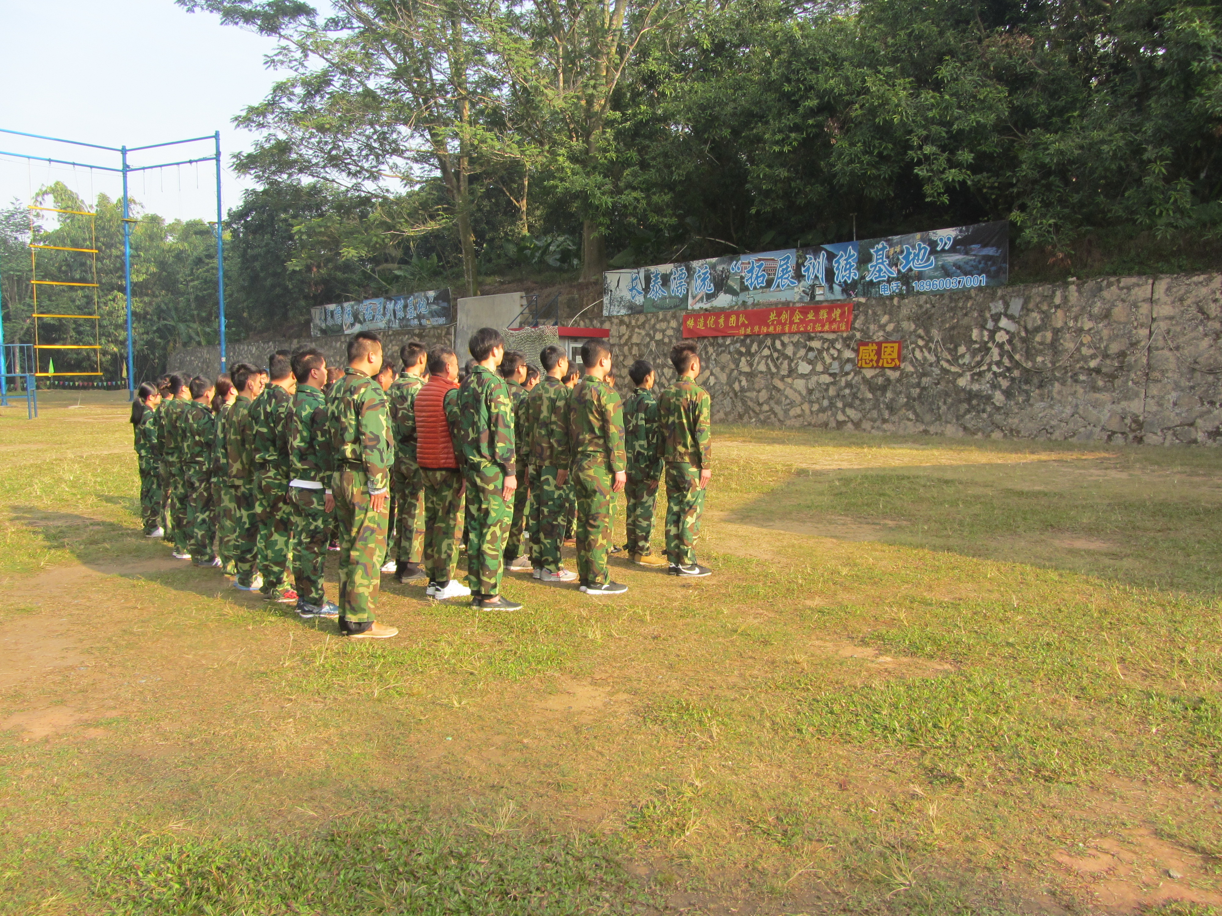 准备工作就绪后,进入到训练环节,首先安排军训,提升大家的精、气、神。良好的精神面貌是一天愉快高效工作的前提,几个回合操练下来个个精神抖擞。