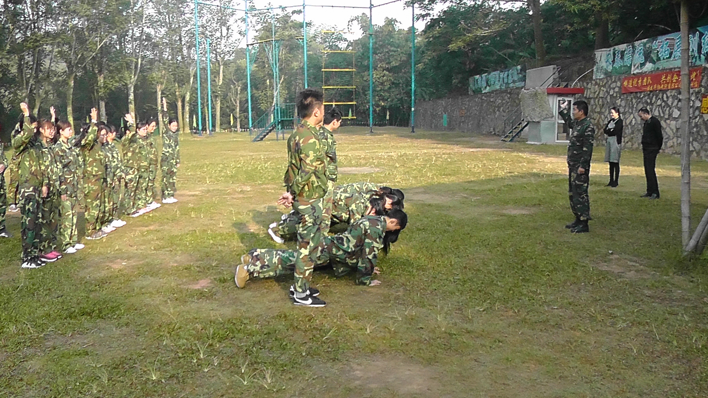 经过一天的小团队PK,最后红队获得了这次拓展的冠军,其他三队暂时落后,相应的三位队长就受到“责罚”, 这是对大家敢于承担、勇于担责的考验,是对领导团队组织决策力、应变能力的考验,更是对团队每个人集体荣誉感、团队凝聚力的深度考验。